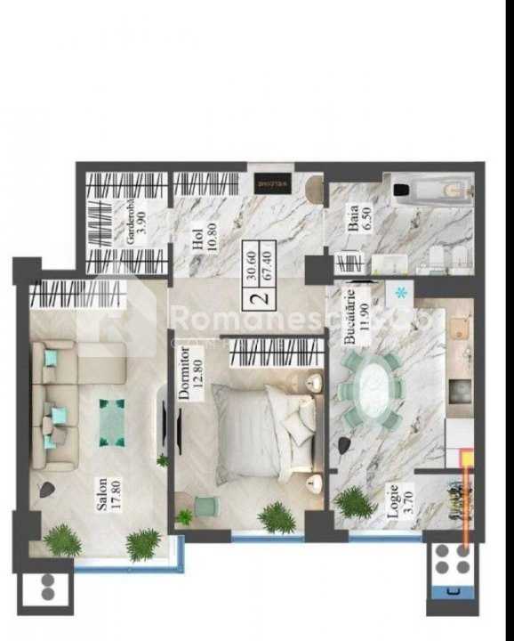 Suprafață totală: 67,4m.p