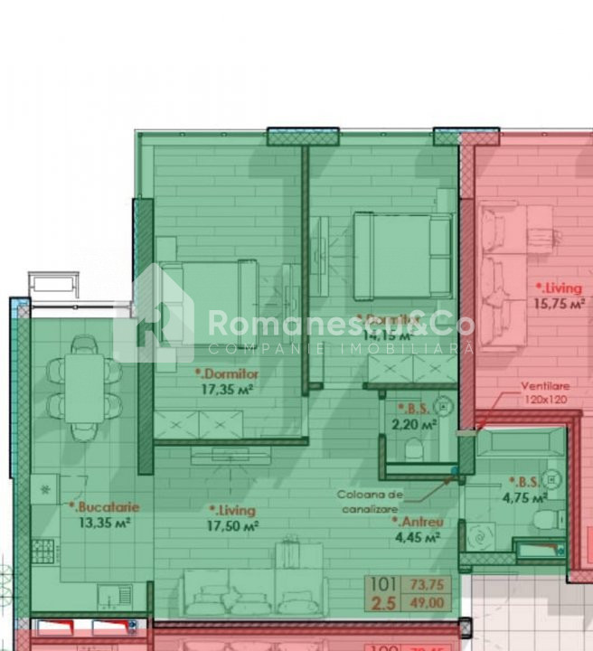 Spre vânzare apartament cu 2 camere și living în variantă albă în complexul Cărpeni, situat pe str. Burebista 25, la 10 minute distanță de Grădina Botanică.