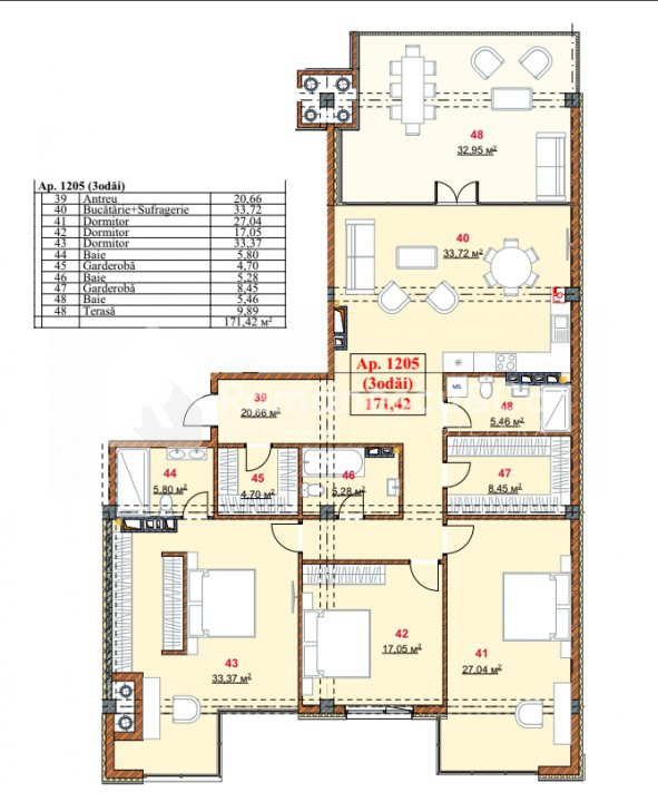 * 3 dormitoare dintre care unul de tip matrimonial cu bloc sanitar