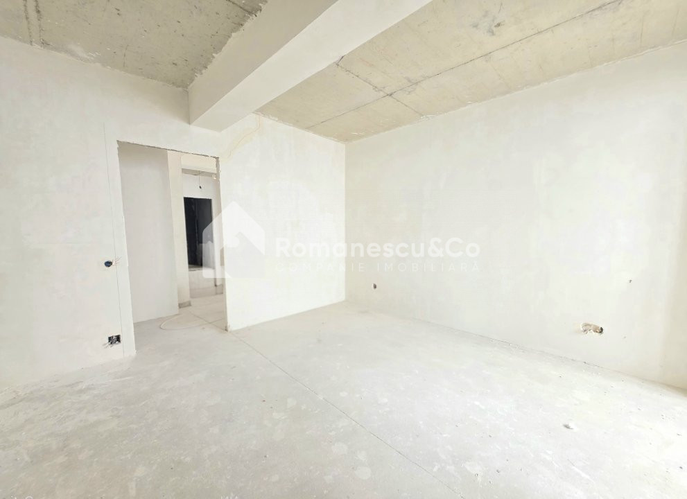 Apartamentul se prezintă în variantă albă și are următoarea compartimentare: