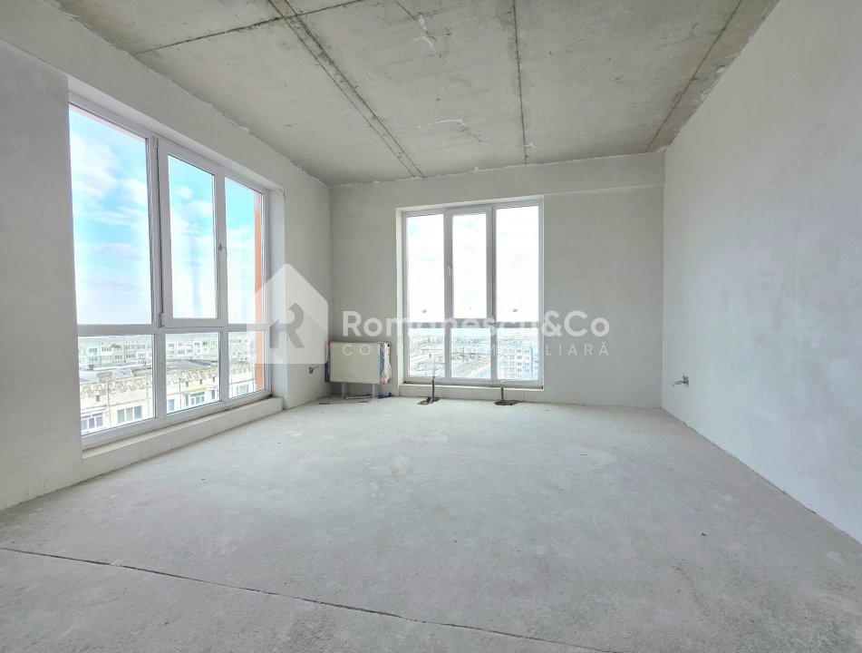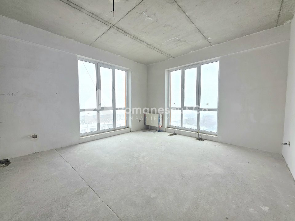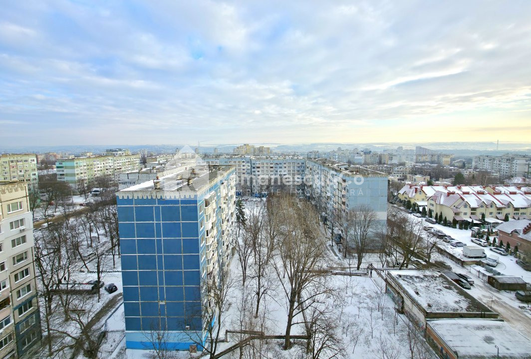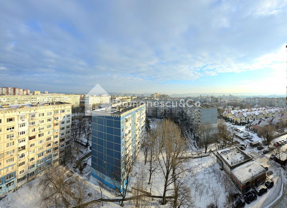 Apartamentul dispune de geamuri panoramice, din care se deschide o panoramă foarte frumoasă spre capitală.