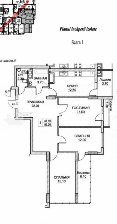 Imobilul are o suprafață totală de 93 mp și este situat la etajul 6 din 11, având o compartimentare practică și luminoasă. Balconul de tip „francez” oferă un plus de lumină naturală și un aspect modern locuinței.