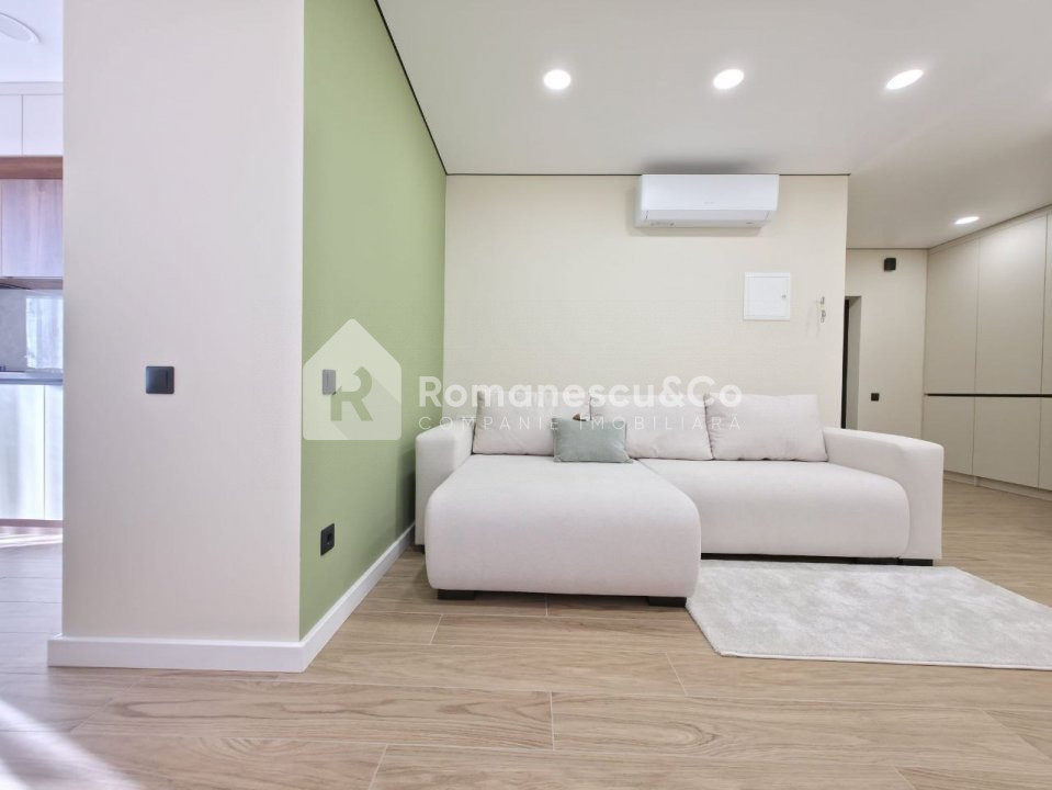 Compartimentare: 2 camere, living, bucătărie, bloc sanitar și antreu.