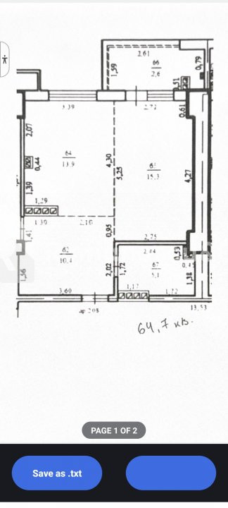 Apartament cu 2 camere, suprafața de 65 mp.