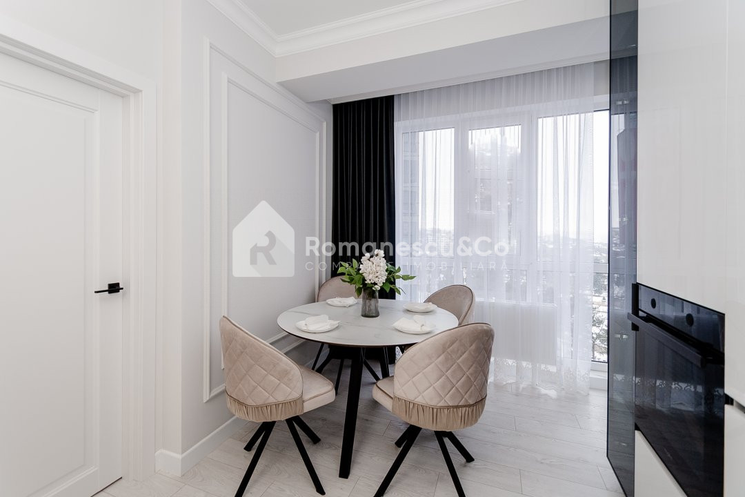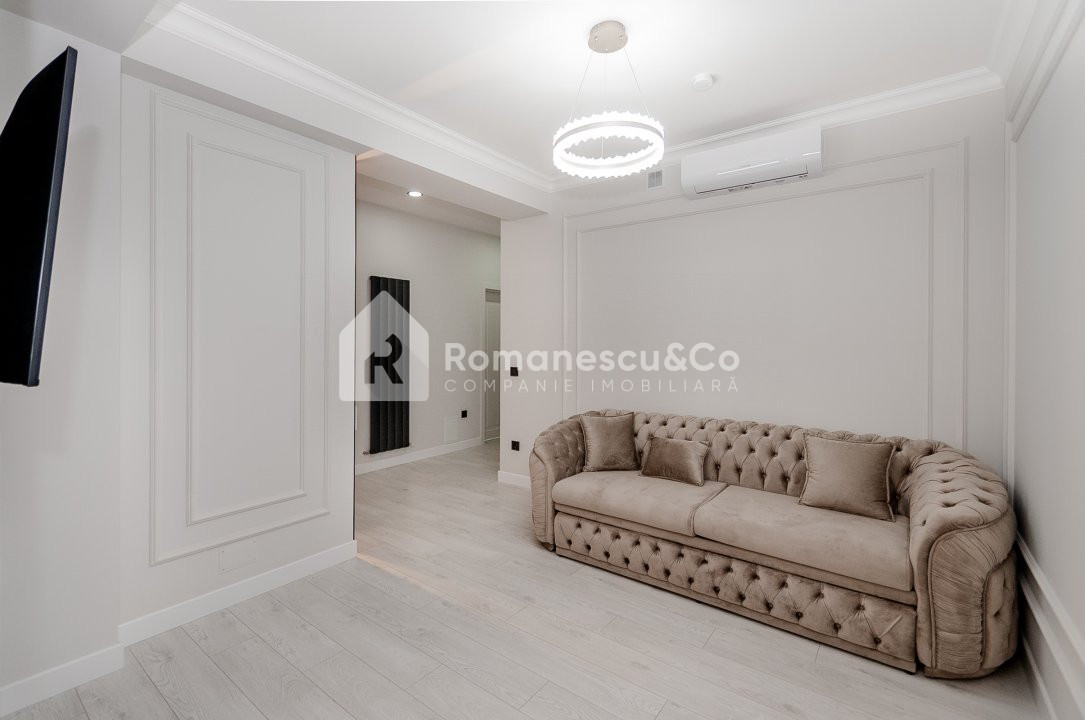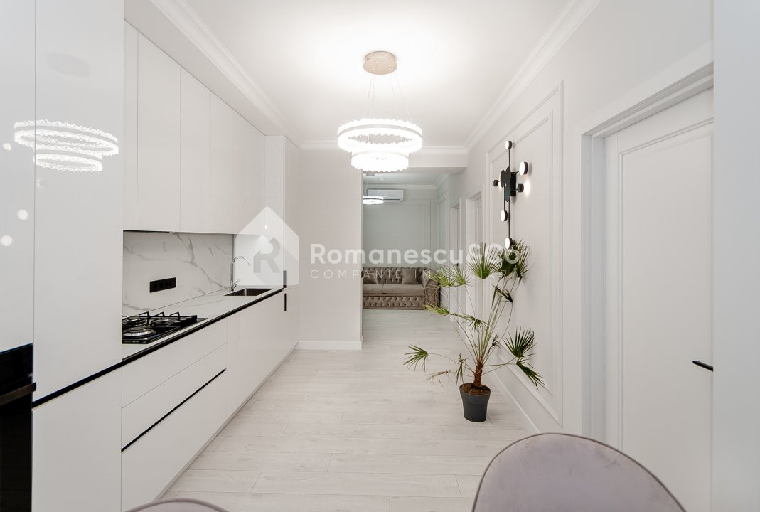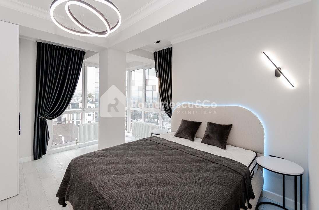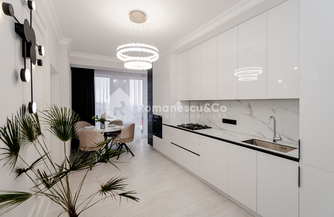 Apartamentul beneficiază de reparație de calitate, design modern și finisaje atent alese. Este mobilat și utilat complet, gata pentru a fi locuit imediat.