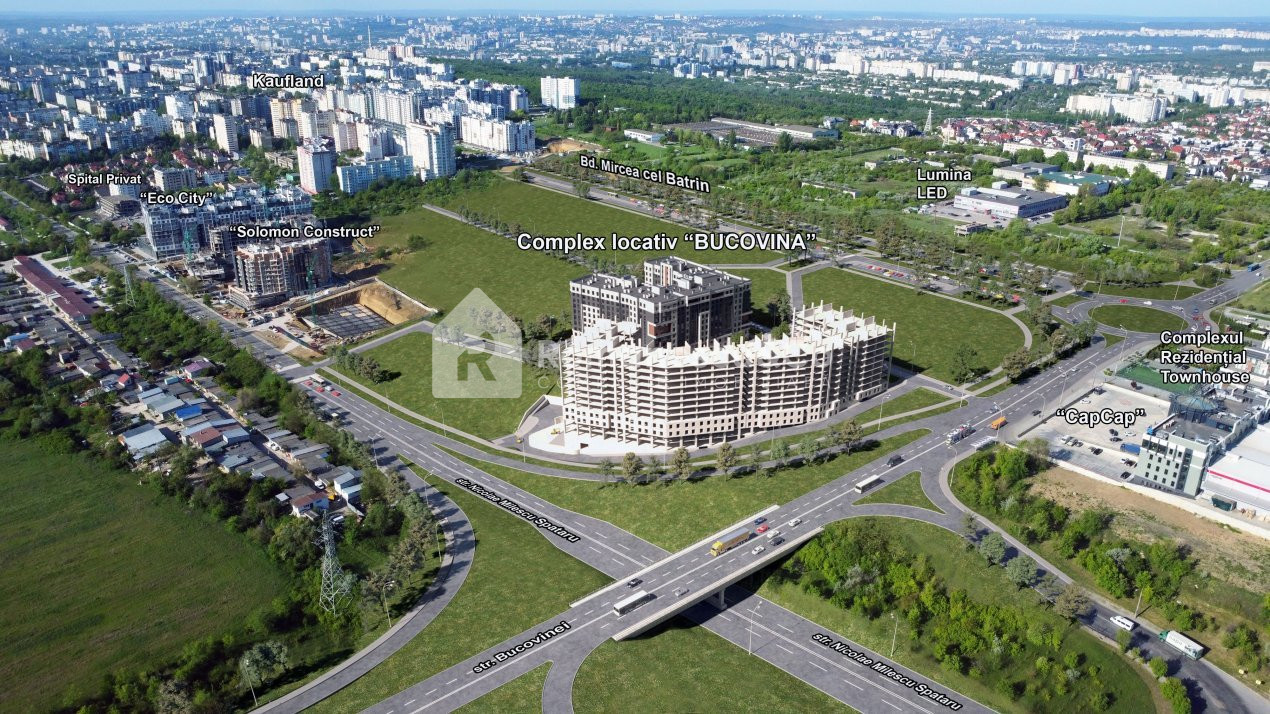 Locație excelentă în sectorul Ciocana, la intersecția a trei artere importante: strada Bucovinei, bulevardul Mircea cel Bătrân și strada Milescu Spătaru.