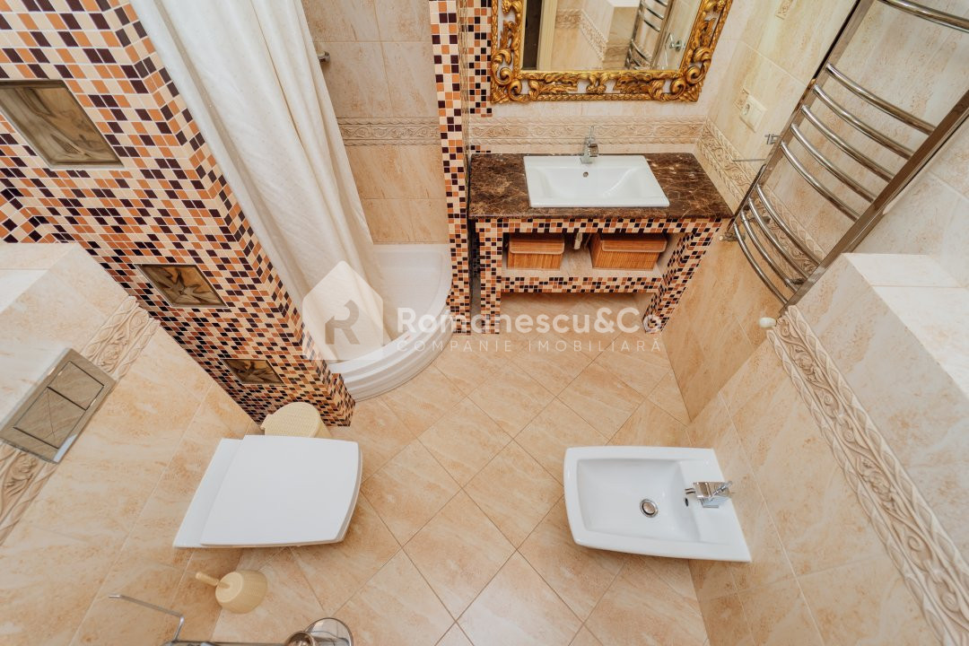 2 băi complet echipate, una cu cadă și cealaltă cu duș;