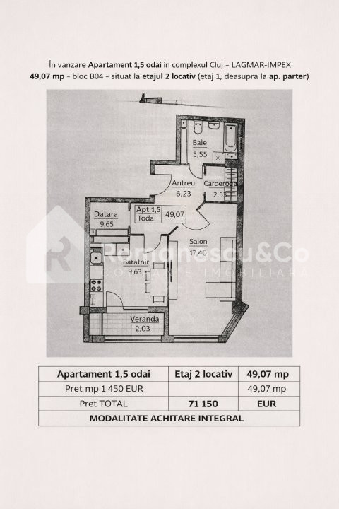 Suprafață totală: 49 mp