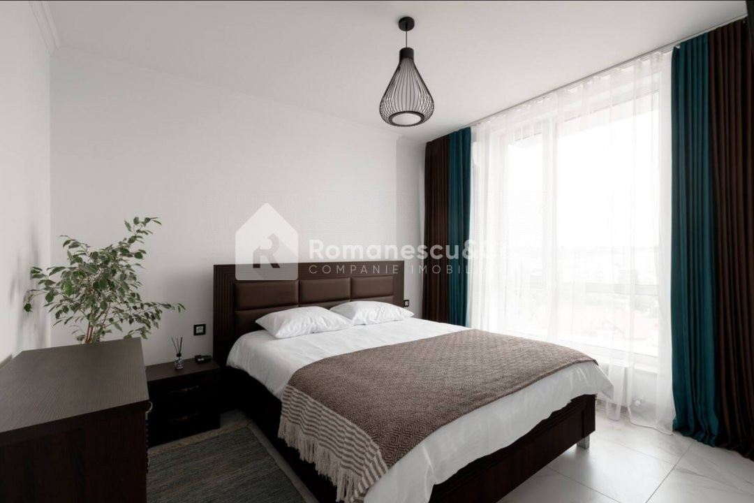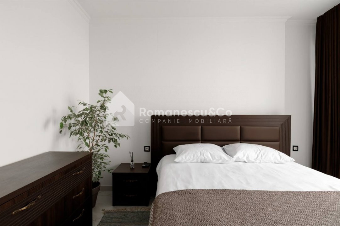 Dormitor luminos cu acces la balcon închis;