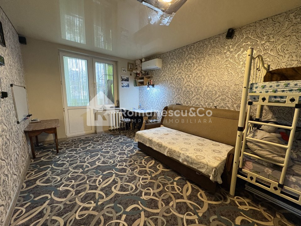 Compartimentat în: 1 cameră, bucătărie, baie, 2 balcoane.