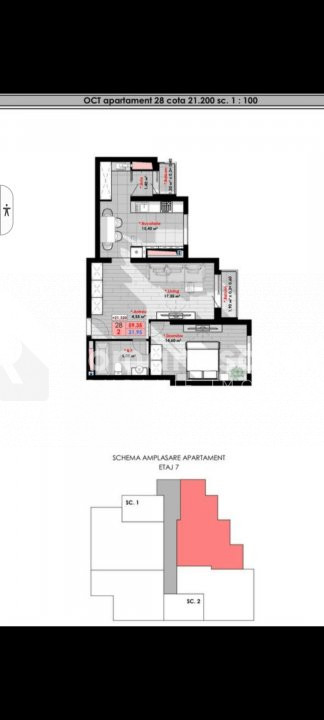 Locuința se află la etajul 8 din 11 și are o suprafață generoasă de 60 mp.