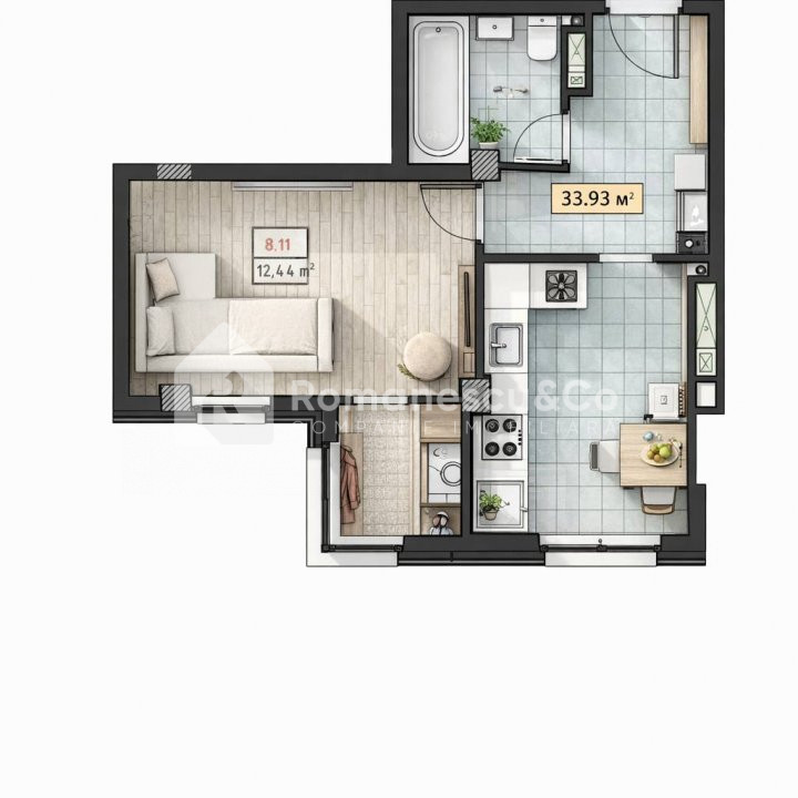 Se vinde apartament cu 1 cameră în bloc nou, cu suprafața de 33,93 m², amplasat pe str. Ialoveni, într-un imobil construit de compania Solomon, cunoscută pentru calitatea construcțiilor sale.