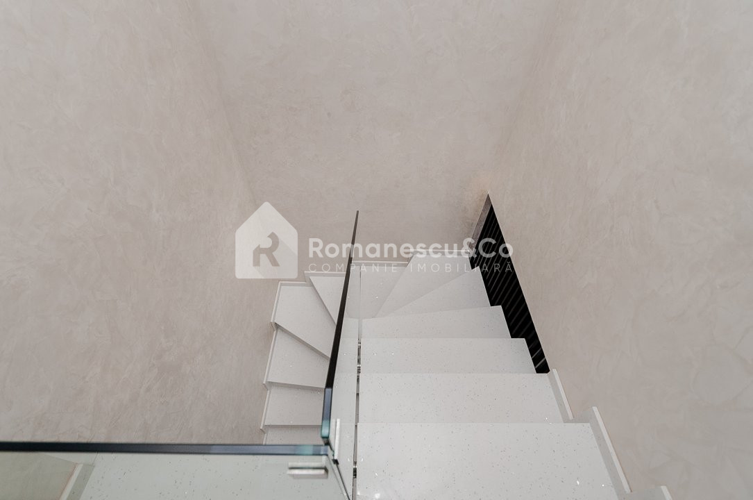 - nivelul doi: coridor, dormitor matrimonial cu bloc sanitar si balcon, doua dormitoare pentru copii si bloc sanitar.