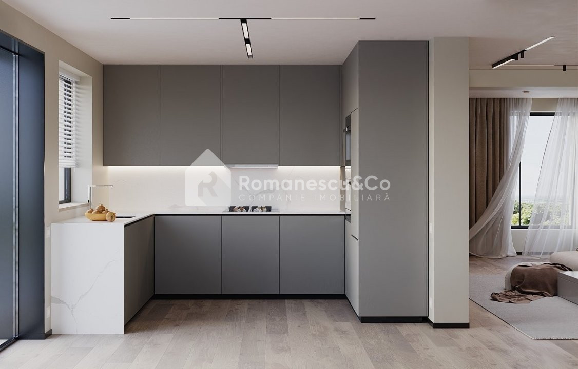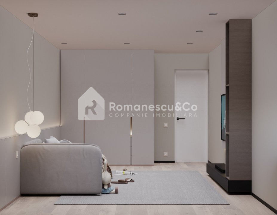 Nivel 1: antreu, bucatarie, living spațios, 2 dormitoare, bloc sanitar.