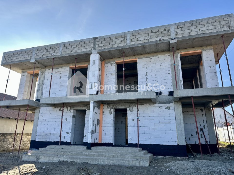 Construcția este realizată din BCA de 40 cm, termoizolat pe exterior cu polistiren de 10 cm, iar etajul superior va beneficia de o fațadă ventilată – asigurând eficiență termică și un aspect modern.
