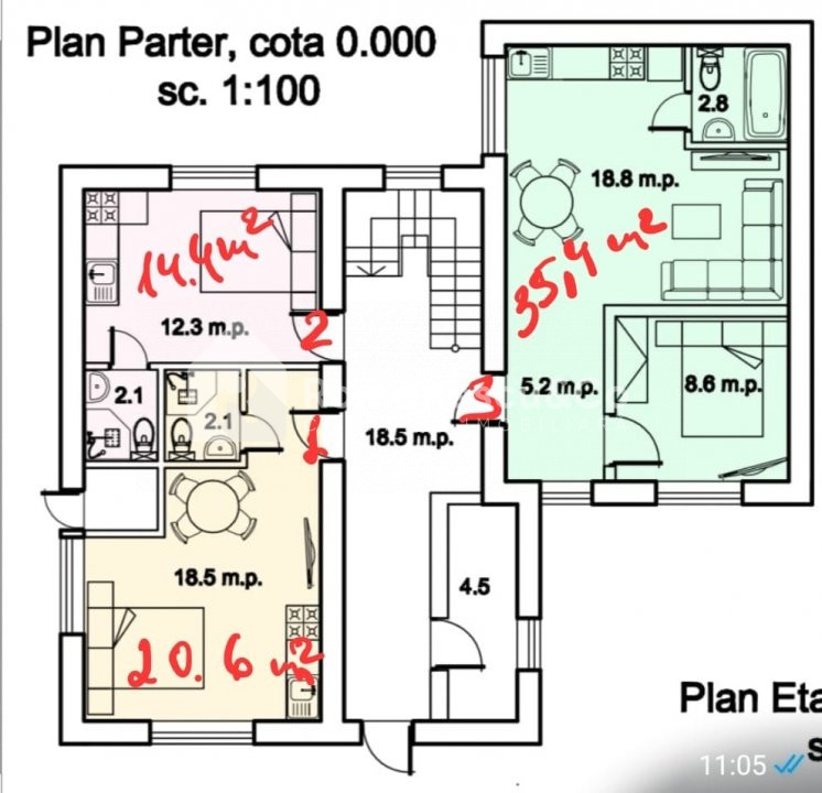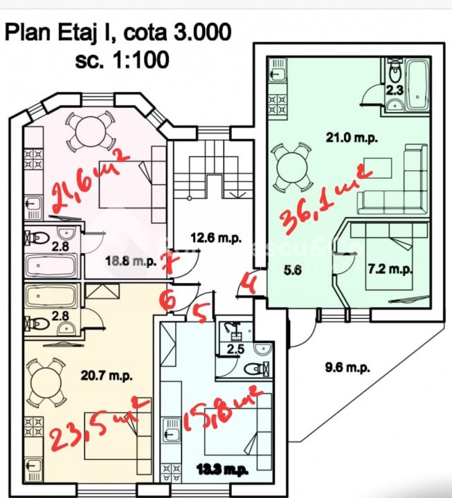 Hotelul are o suprafață totală de 285 mp și este compartimentat eficient astfel: