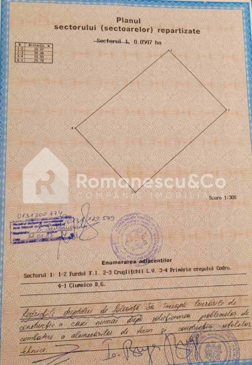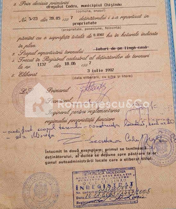 Se oferă spre vânzare teren pentru construcție, cu o suprafață de 6 ari (0.0597 ha), situat în or. Codru, str. Miorița, mun. Chișinău.