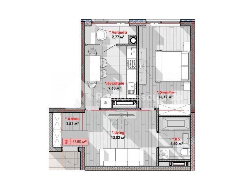 Для приобретения квартиры необходим первоначальный взнос в размере 43.799€, а оставшаяся сумма выплачивается раз в 3 месяца по 2.125€, напрямую застройщику (без банка и 0% комиссии).