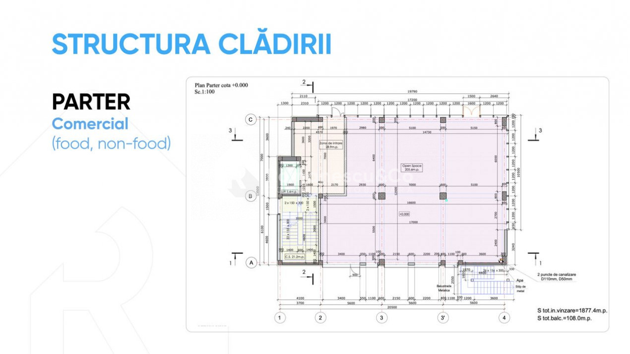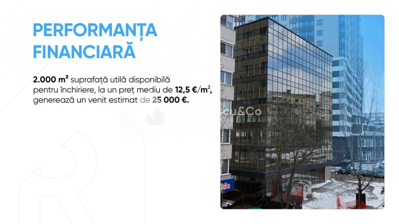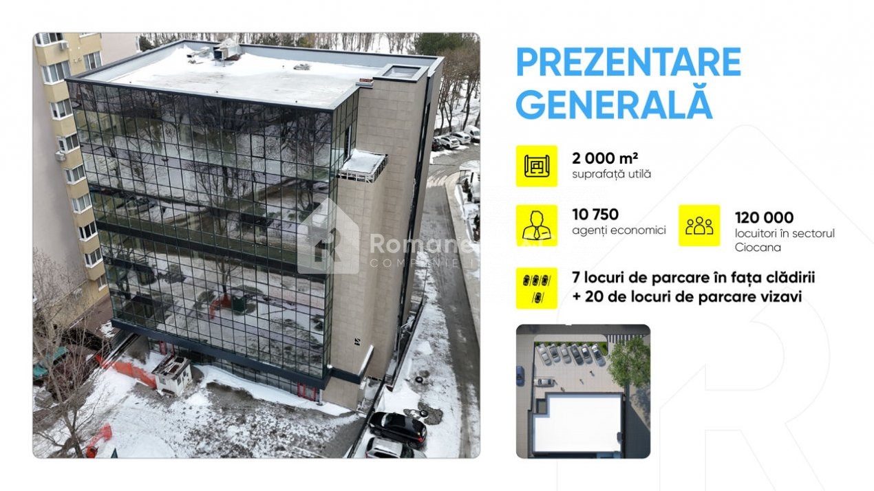 Предлагаем современное здание, предназначенное для офисной деятельности, с коммерческими помещениями на первом этаже, расположенное в районе с интенсивным трафиком в секторе Чеканы, ул. Джинта Латинэ — идеальная локация для бизнеса, которому важны видимость и удобный доступ.